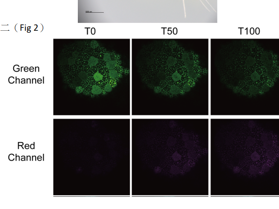 Fig 2: In Marchantia polymorpha, we observed a gradual increase of red fluorescence after the induction of conversion.