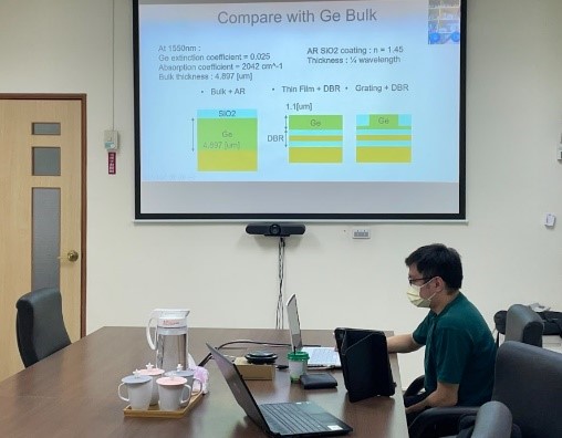 Figure 1 Online line discussion between Los Angeles (Prof. Jia-Ming Liu, Prof. Woodhi Cheng) and NCHU (Dean Guu-Chang Yang, Prof. Zingway Pei, Prof. Chun-Nein Liu and Mr. Ching-Yu Hsu)